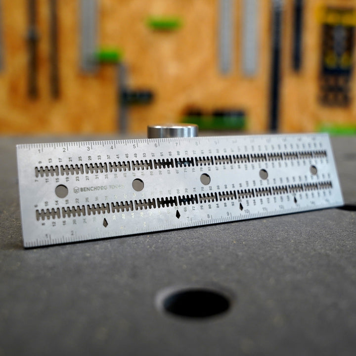 Made from 2mm stainless steel, the Combi Max 160mm blade is built to be strong and reliable. It caters to shelf pin holes designed for 4mm pins in conjunction with our RCT (4mm) Shelf Pin Drill Guide. Laser-annealed indicators, crafted with precision tasks in mind, and millimetre slots facilitate meticulous marking on your material with an impressive accuracy of less than ±0.10mm.