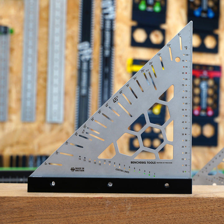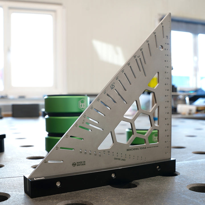 CNC-machined from premium aluminium and steel, this tool features precision laser-etched markings for clear, long-lasting reference points on angles and centre lines.